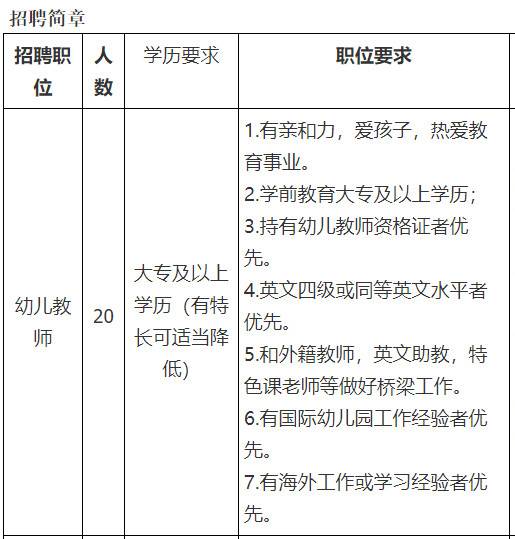 招聘单位:南阳市高新区美伯幼儿园